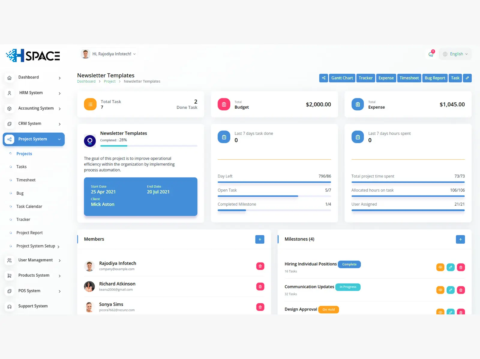 H-Space All In One Business ERP With Project, Account, HRM, CRM